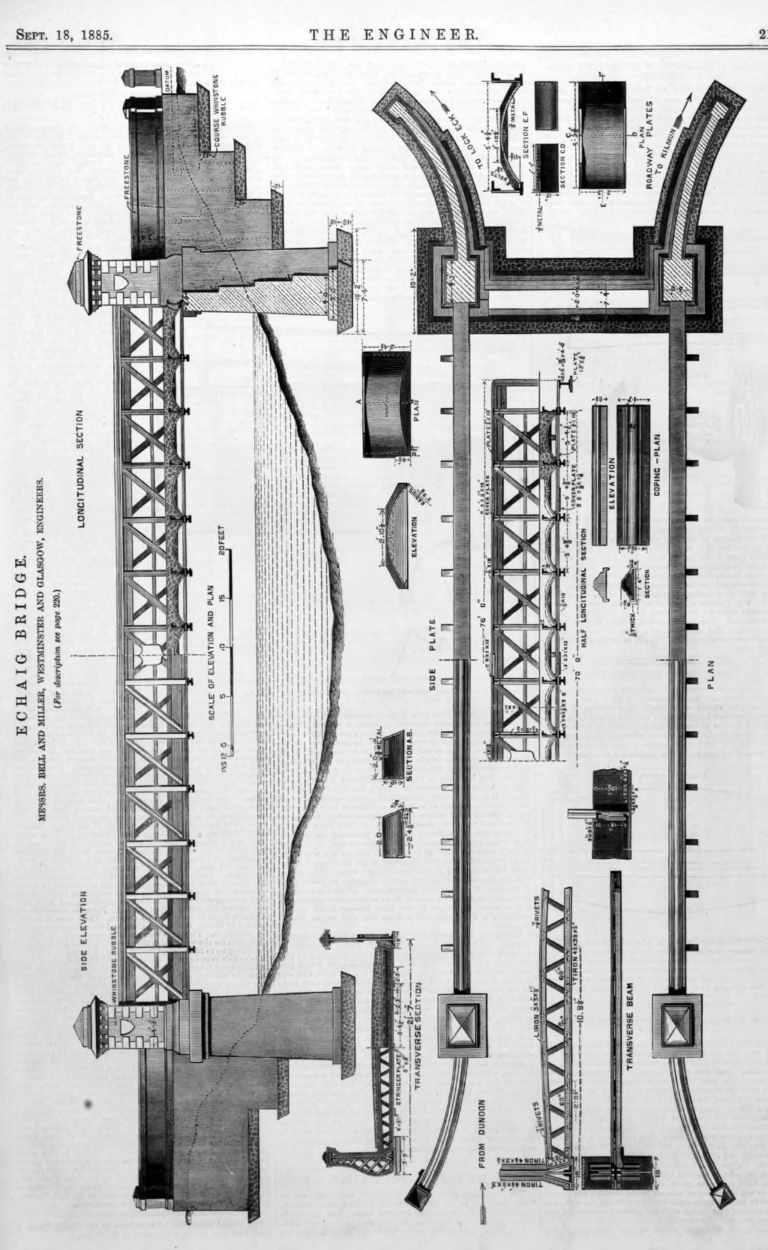The bridge was featured in The Engineer in September 1885, and showed the beautiful working plans.